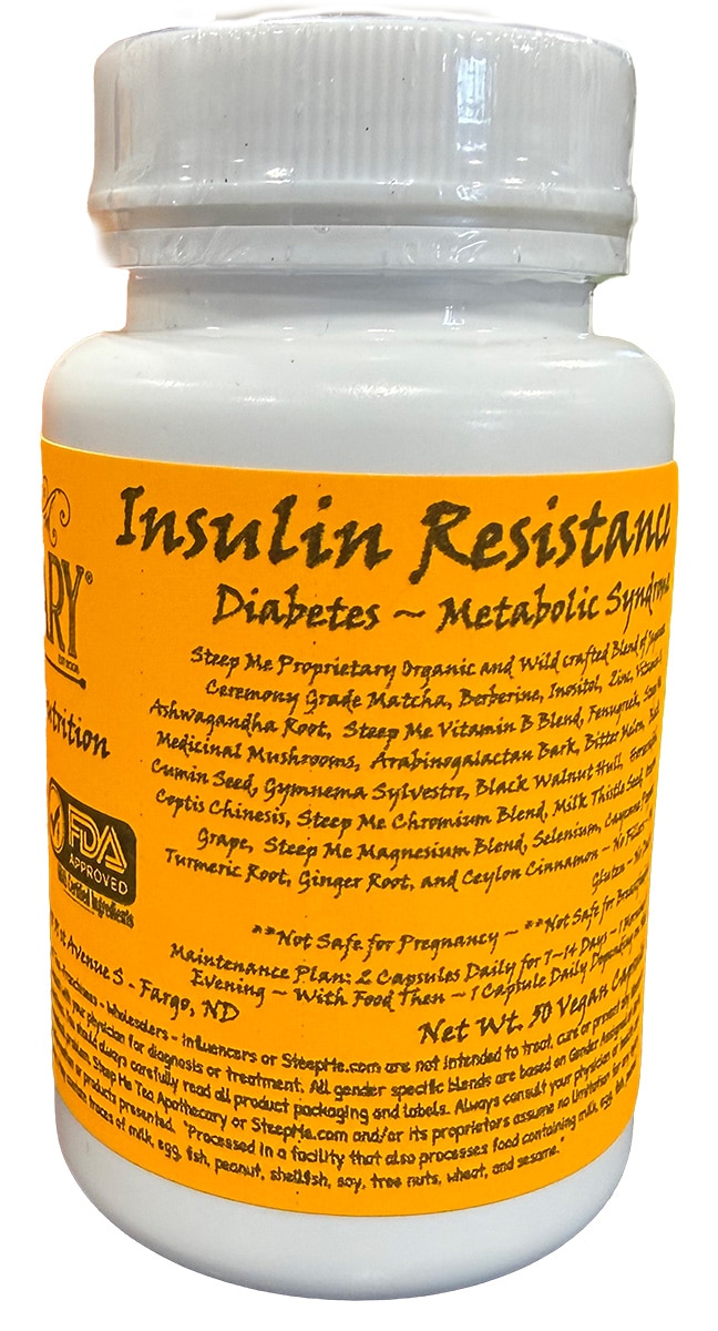 Steep Me Micro-Nutrition combinations are a wonderful way to get health benefits from different combinations of Vitamins and Minerals. With this blend we are providing a healthy and potent blend of herbs and vitamins to help the body with insulin resistance and in turn help with Metabolic Syndrome. What is Insulin Resistance? Insulin resistance happens when cells in your muscles, fat and liver do not respond to insulin as they should. This is also known as impaired insulin sensitivity. Insulin is essential for life and regulating blood glucose (sugar) levels. Insulin helps move glucose from your blood into your cells so your body can use it for energy. For several reasons, your cells can respond inappropriately to insulin. This means they cannot efficiently use glucose for energy or for storage. Insulin regulates the amount of glucose that circulates in the bloodstream. It induces the cells to absorb glucose from the food people eat. Insulin usually helps the body maintain a good balance of energy by preventing the level of blood glucose from spiking for too long. Insulin usually helps the body maintain a good balance of energy by preventing the level of blood glucose from spiking for too long. The reasons for insulin resistance remain complex, and researchers continue to investigate. The following steps outline the current understanding of how insulin resistance develops ~ Insulin loses its ability to support body cells effectively ~ At first, the pancreas secretes more insulin in order to maintain safe blood sugar levels ~ The pancreas becomes unable to maintain the release of extra insulin to compensate for the cells’ increasing resistance ~ Consistently high levels of blood glucose develop, which can lead to prediabetes and type 2 diabetes if an individual is unable to receive treatment and manage blood sugar levels. Acquired causes of the condition, meaning you are not born with the cause, include ~ Excess body fat: Scientists believe obesity is a primary cause of insulin resistance. Excess fat in your belly and around your organs (visceral fat) especially raises your risk. Physical inactivity: Movement and exercise make your body more sensitive to insulin. Exercise also builds muscle that can absorb blood glucose. A lack of physical activity can lead to the condition. Food choices: A diet of highly processed foods, high in carbohydrates and saturated fats, has been linked to the condition. Certain medications: Steroids, blood pressure medications, HIV treatments, and other medications can cause insulin resistance. Insulin resistance: Causes, symptoms, and prevention