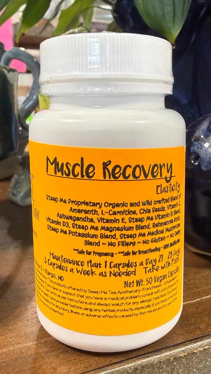 Ingredients: Steep Me Proprietary Organic and Wild crafted Blend of Amaranth, L-Carnitine, Chia Seeds, Vitamin C, Ashwagandha, Vitamin E, Steep Me Vitamin B Blend, Vitamin D3, Steep Me Magnesium Blend, Rehmannia Root, Steep Me Potassium Blend, Steep Me Medical Mushroom Blend ~ No Fillers ~ No Gluten ~ No Dairy